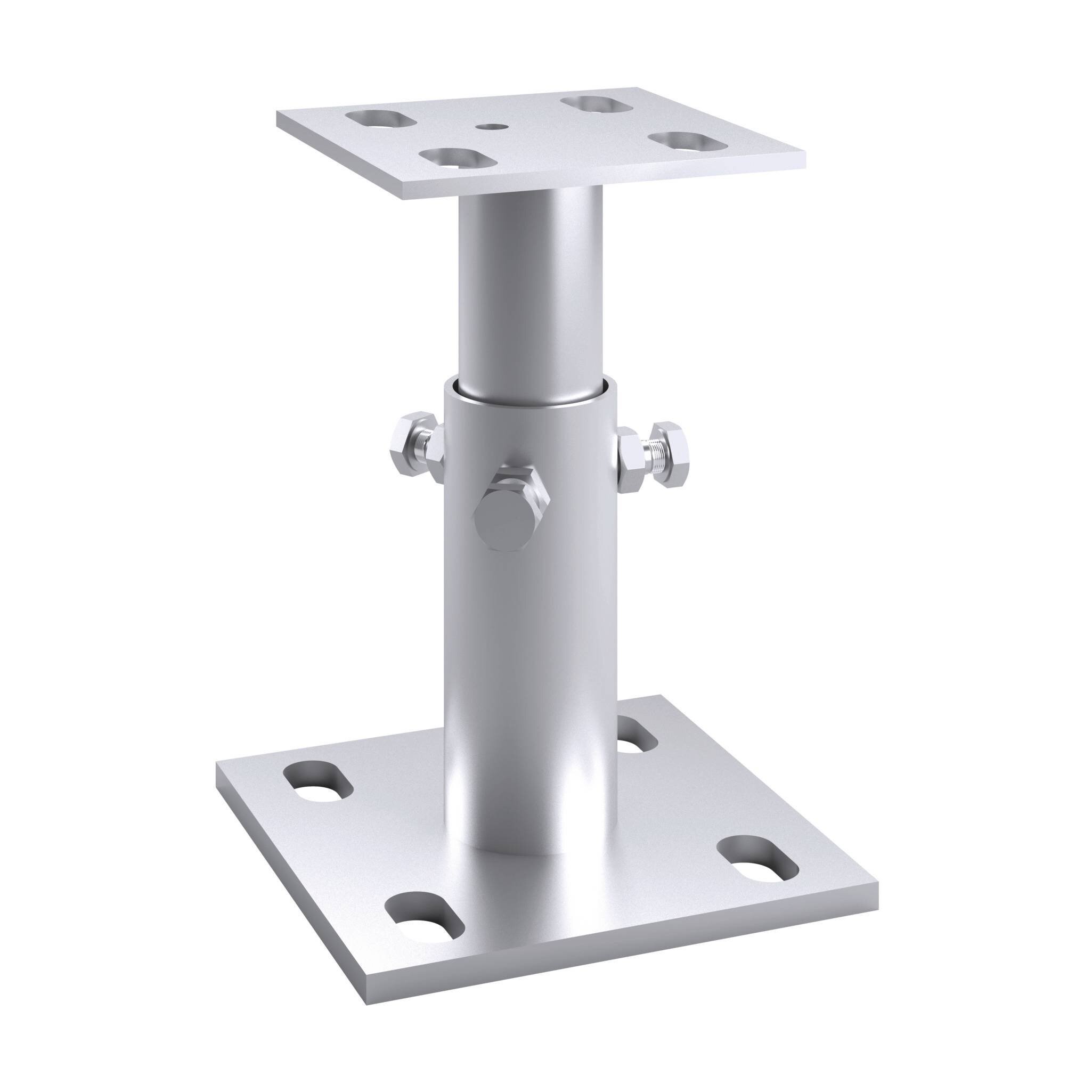 Galvanisch verzinkte Standkonsole inkl. Schalldämmung. Bestehend aus einer Bodenplatte mit Standrohr und Kopfplatte mit Führungsrohr. Die Verbindungsschrauben sind inklusive. Gewährleistet einen sicheren und festen Stand der Verteiler. Langlöcher in der Bodenplatte ermöglichen eine Verschraubung auf dem Untergrund.