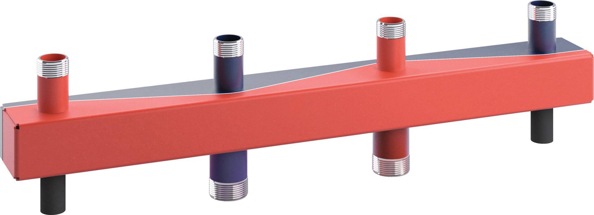 Kombinierter Vor- und Rücklaufverteiler, bestehend aus Vierkantrohr mit nebeneinander angeordneten, durch sinusförmige Trennwand geteilte Kammern aus schwarzem Stahlblech S235.Der Kesselanschluss erfolgt von unten und die jeweiligen Heizkreise werden platzsparend und übersichtlich von oben angeschlossen.Das Bauteil ist werkseitig 100% dichtigkeitsgeprüft und grundiert.Verpackt als SET inklusive EPP-Wärmedämmung. Die Dämmstärke entspricht dem GEG (Gebäudeenergiegesetz). Sinus Kleinverteiler Typ 80/60 und Sinus HydroFixx Typ 80/80 und Typ 120/120 inkl. Wandhalterung.