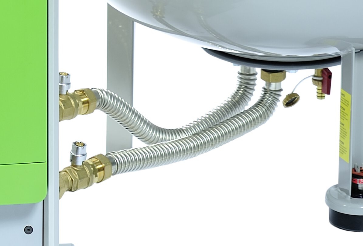 Zum Anschluss von Variomat 2-2/.. Steuereinheiten an Variomat Grundgefäße, bestehend aus zwei Edelstahl-Anschlusswellrohren mit Verschraubungen.