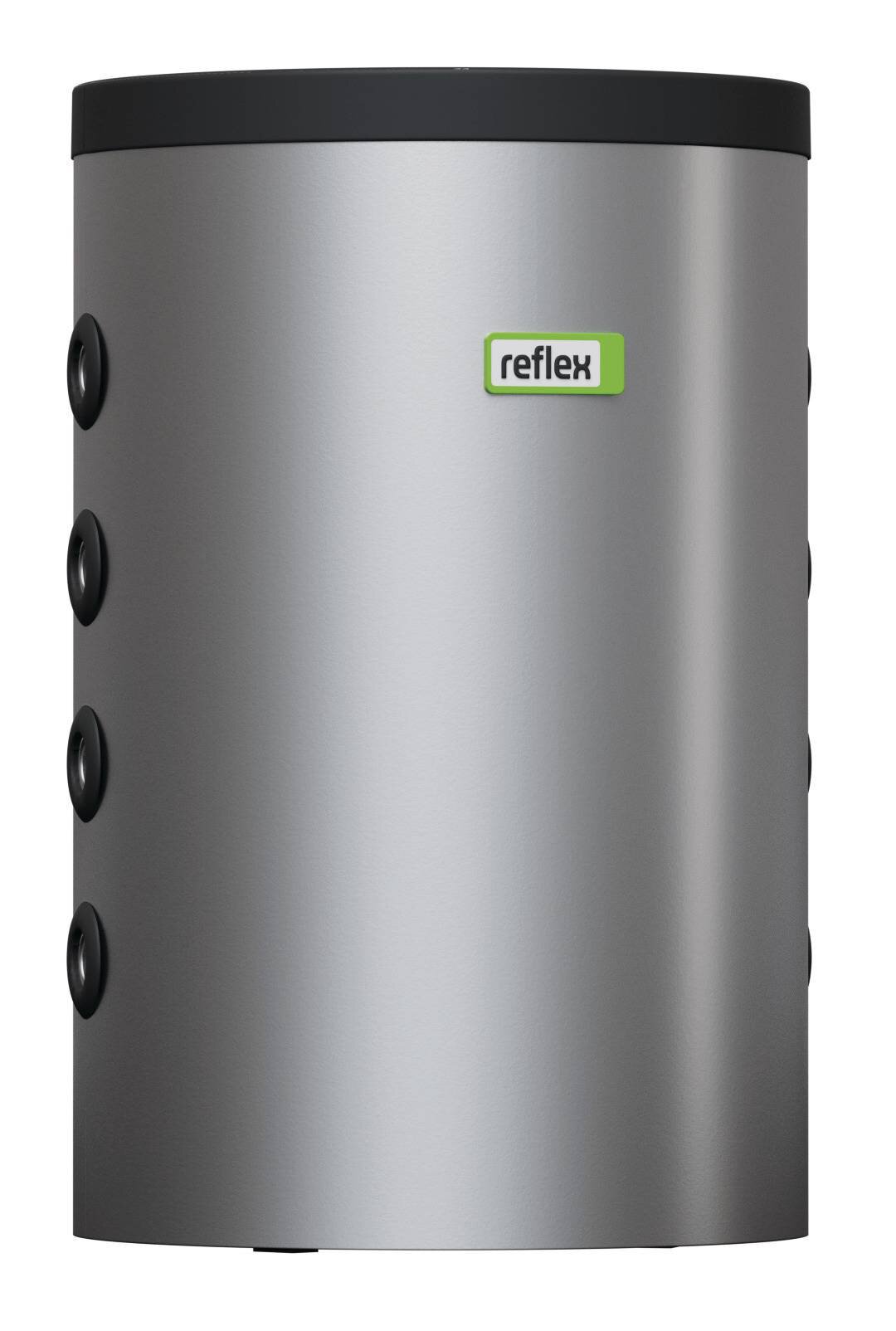 Pufferspeicher zur Speicherung von Heizungswasser. In stehender Ausführung ohne Flansch, ohne innenliegende Wärmetauscher. Die zwei Anschlussstutzenreihen, jeweils vier, ausgeführt als G 1 ½ Zoll für Wärmeerzeuger und -verbraucher sind vertikal, um 180° versetzt, als Lade- bzw. Entladestutzen angeordnet. Die Stutzen können als Einschraubmöglichkeiten für Fühlerhülsen, Thermometer o.ä. genutzt werden.