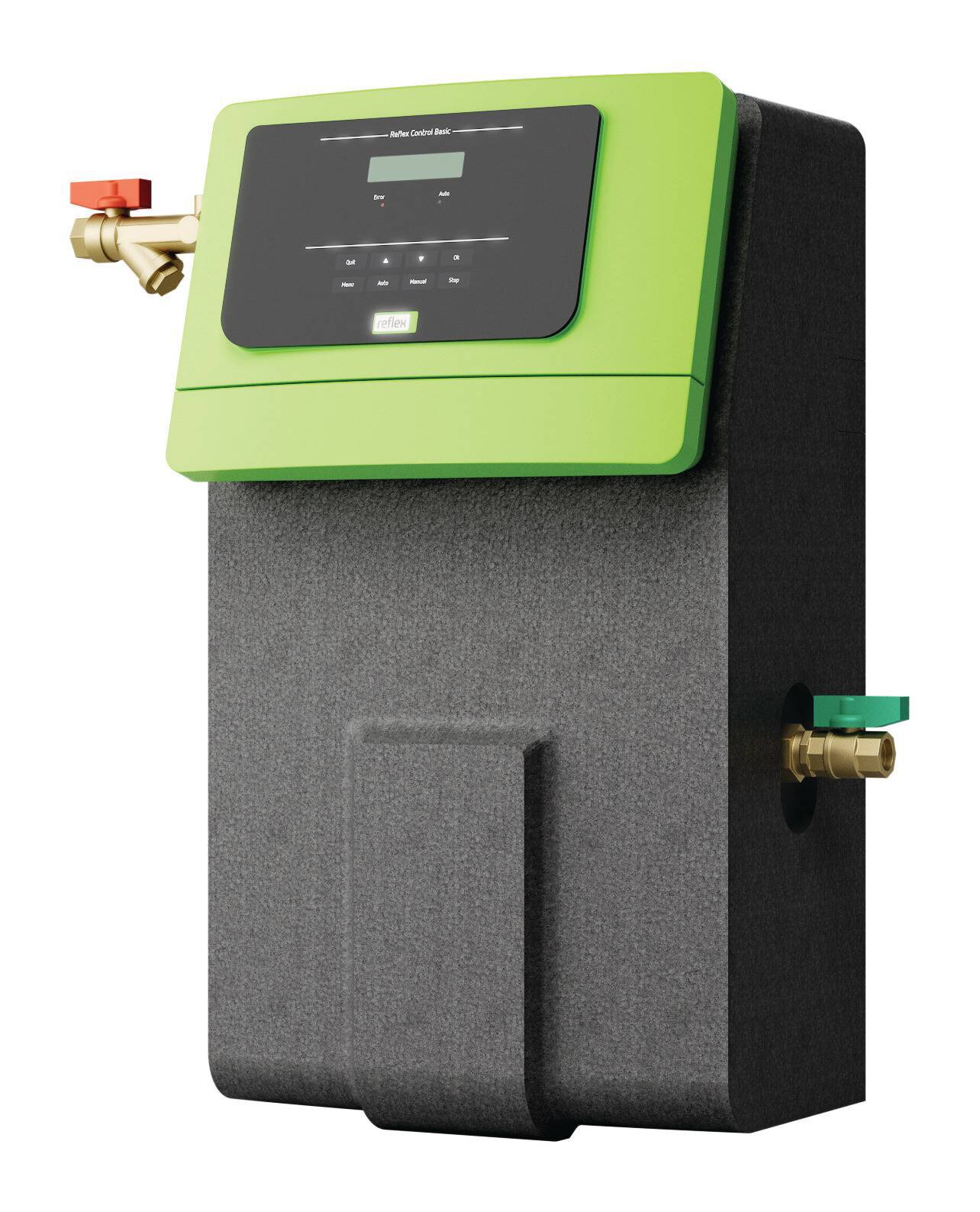 Funktionsüberwachung der Druckhaltung in geschlossenen Heiz-, Kühlwassersystemen und kontrollierter Nachspeisung von Ergänzungswasser und Füllfunktion bei Erst- und Wiederbefüllung. Inkl. Kontrollierter Nachspeisung von Ergänzungswasser und Füllfunktion bei Erst- und Wiederbefüllung. Besonders geeignet für Systeme mit geringem Nachspeisewasserdruck, mit CE Kennzeichen. Bestehend aus einer für die Wandmontage konstruierten Steuereinheit mit Hydraulikteil und elektronischer ergonomisch angeordneter Control Basic Steuerung. Die gesamte Einheit befindet sich schmutzgeschützt in einem Gehäuse aus expandiertem Polypropylen mit einer abnehmbaren Wartungshaube. Hydraulik besteht aus Druckerhöhungspumpe mit elektronischem Drucksensor und integrierter Systemtrennung zum Schutz des Trinkwassers nach DIN 1988-100 und EN 1717 mittels drucklosem Netztrennbehälter und Schwimmerventil.