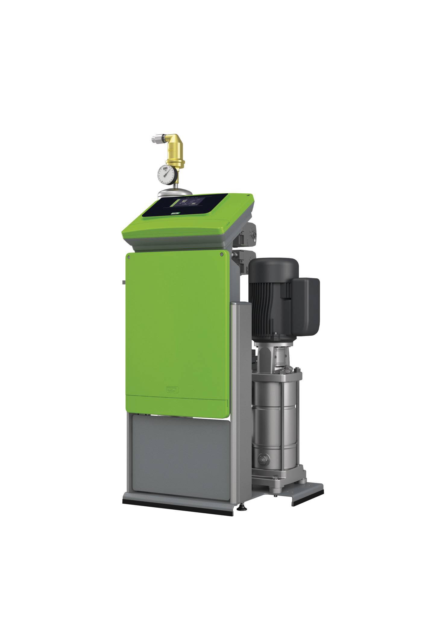 Control Touch ist eine vollautomatische und frei parametrierbare Mikroprozessorsteuerung mit Touch Bedienung, Echtzeituhr, differenzierendem Fehler- und Parameterspeicher, kombinierte grafische und klartextliche Darstellung von Systemdruck und allen relevanten Betriebs- und Störmeldungen mit Funktionsschema. Signalisierung des aktiven Betriebsmodus, Sammelstörmeldung, Minimalfüllniveau sowie der Funktion von Pumpe und Nachspeiseventil.