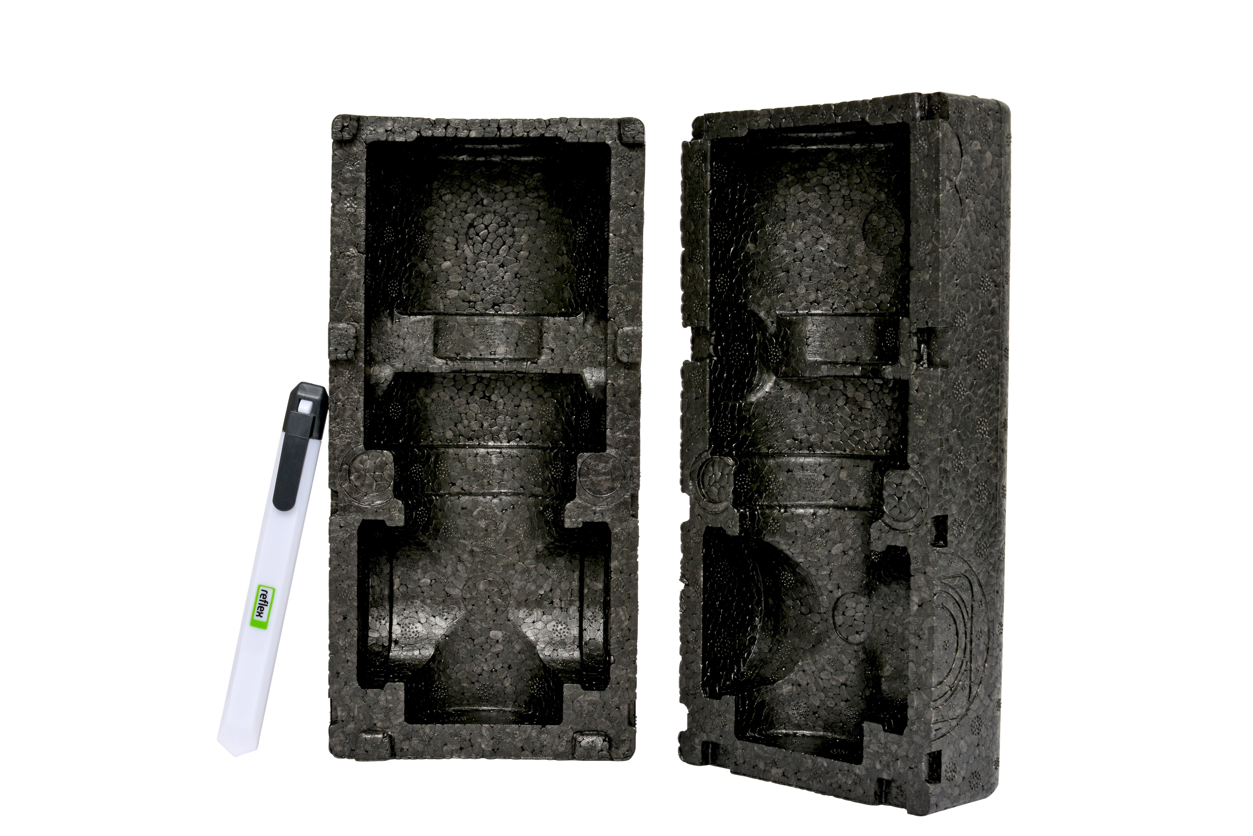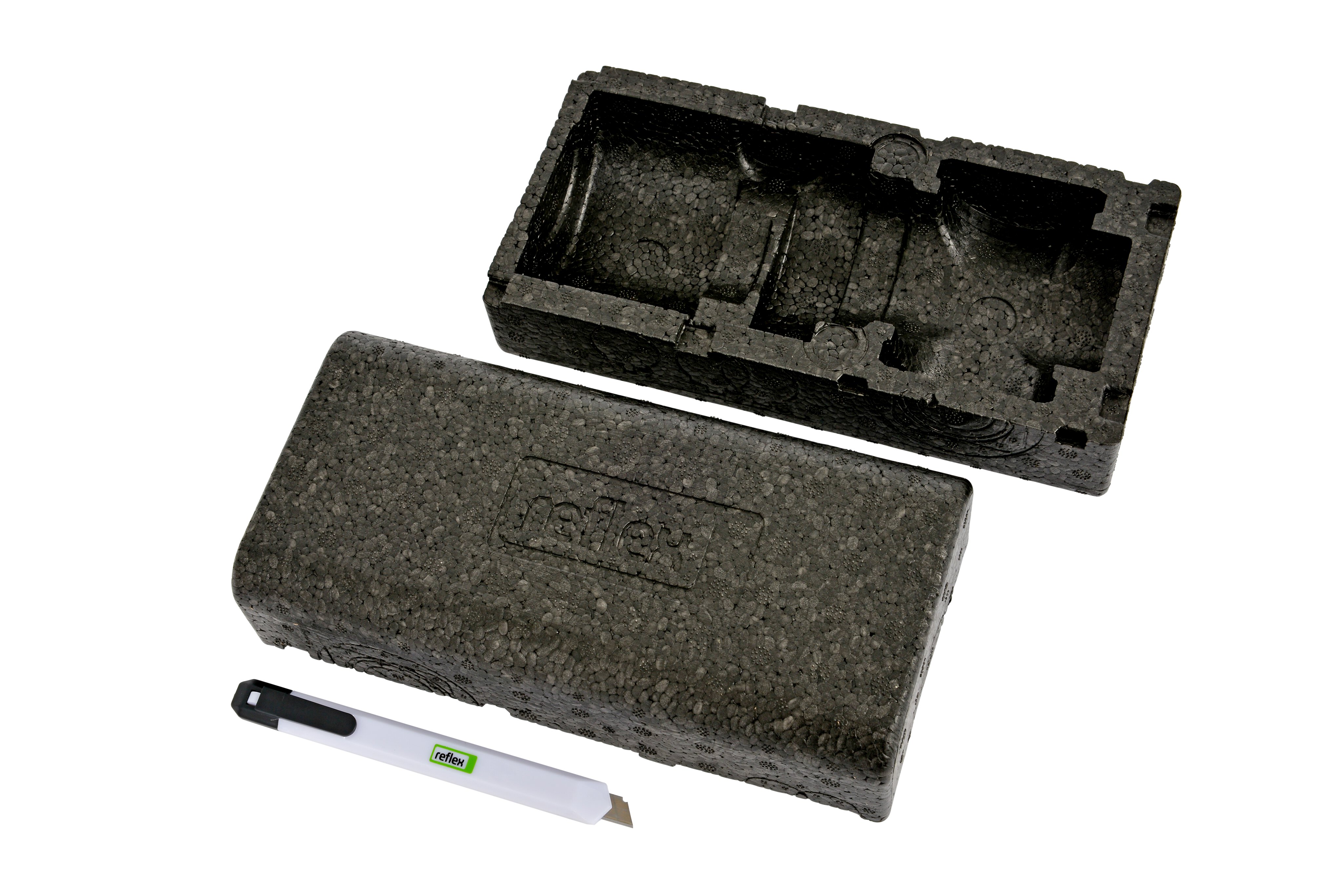 Wärmedämmung für Exvoid Mikroblasen- oder Exdirt Schlammabscheider. Bestehend aus zwei form- und temperaturstabilen, anpassbaren, formschlüssigen Halbschalen aus Hartschaum mit Klappverschluß oder Spannband.