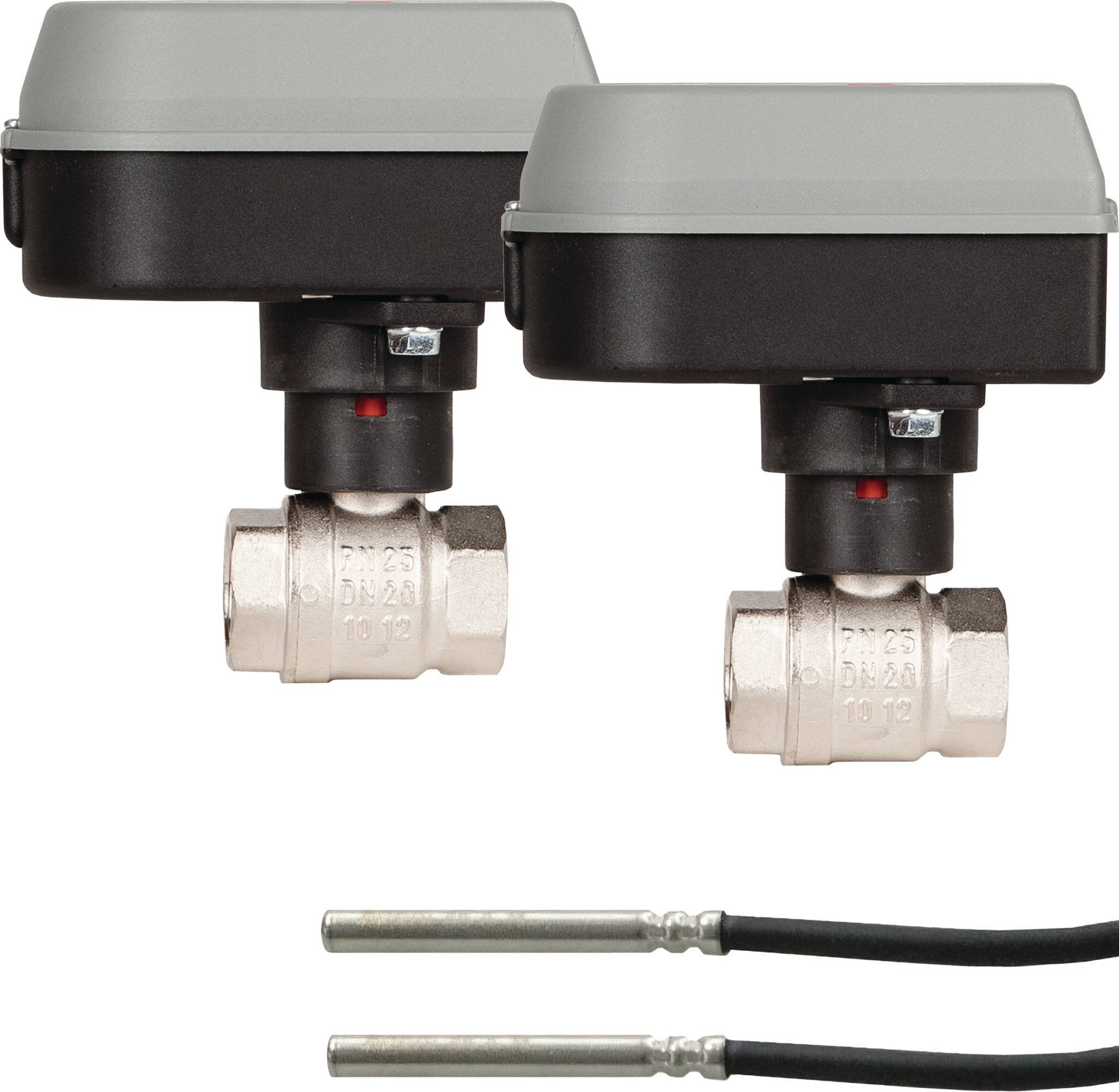 2 Zonen Ventil DN32 mit zwei PT1000 Sensoren und Elektro Anschlussbox zur Rücklaufeinschichtung.