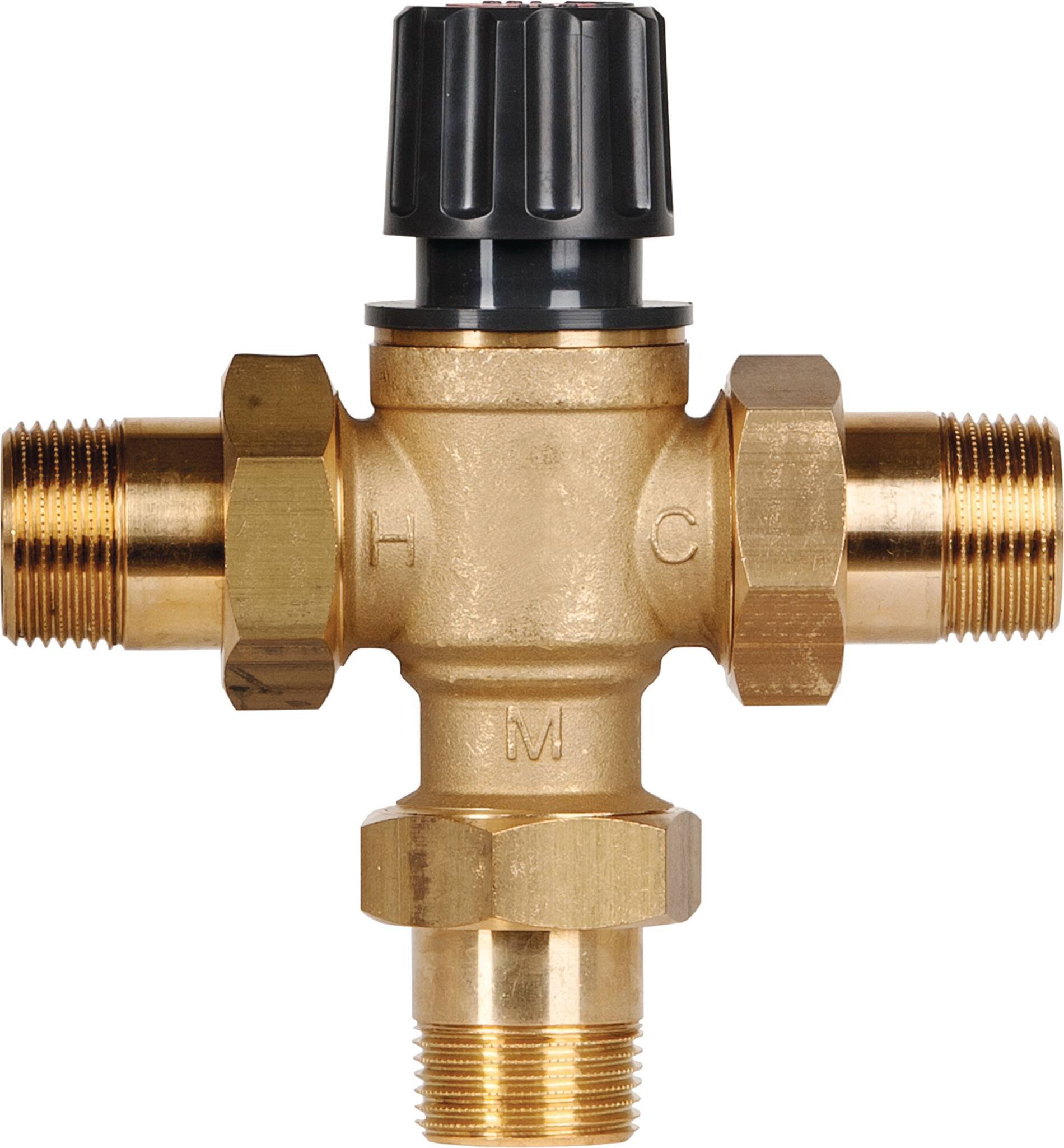 zum Einbau in Systeme mit hohen Puffertemperaturen, im Puffervorlauf zur Frischwasserstation. Dient zur Beimischung von kälterem Heizungswasser aus dem Pufferspeicher aus einer kälteren Schicht, um die Vorlauftemperatur in der Frischwasserstation zu senken und so eine noch höhere Regelgüte des Warmwassers zu erhalten, vorzugsweise in Systemen mit beispielsweise Solarthermie oder Festbrennstoffkesseln zu verwenden.