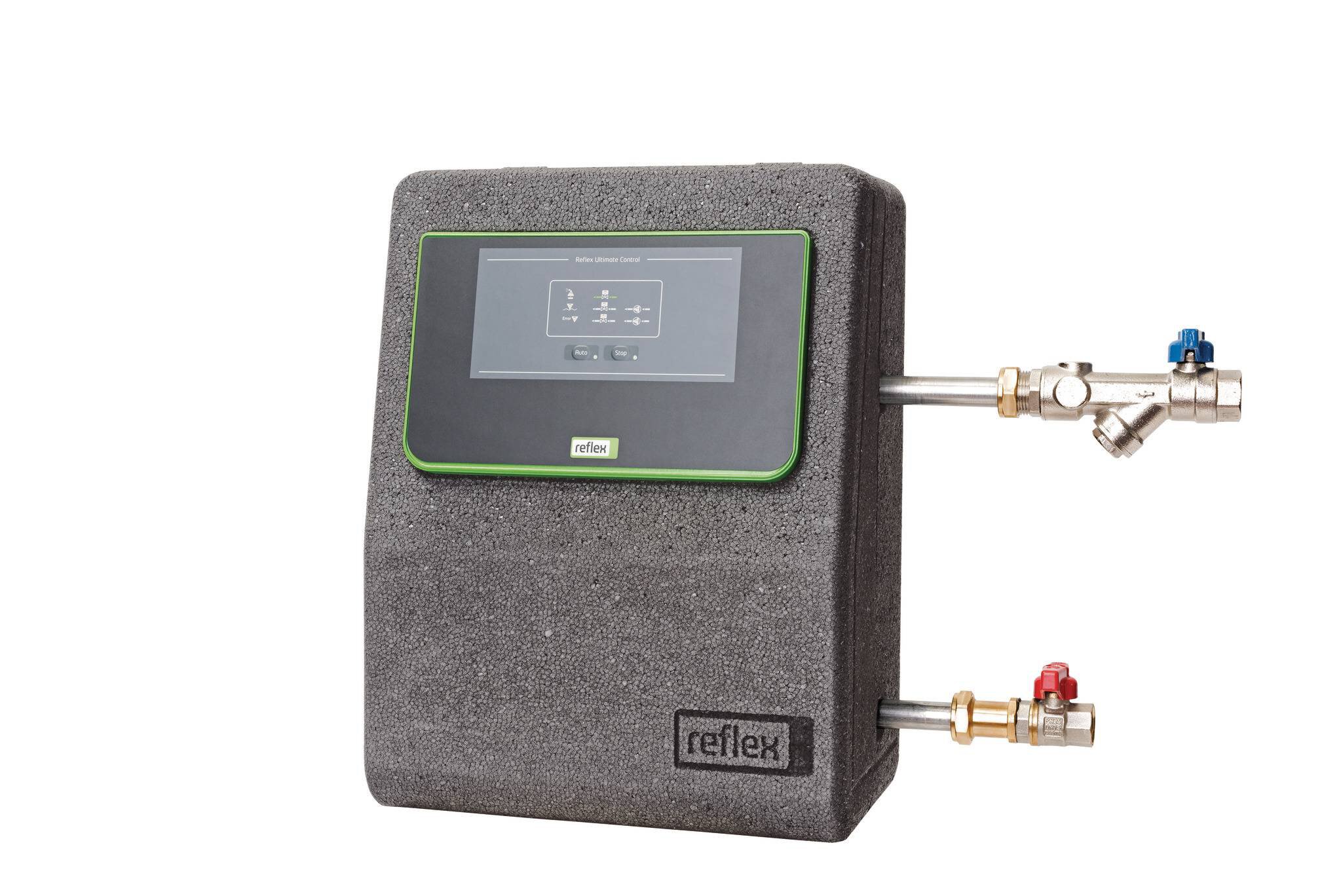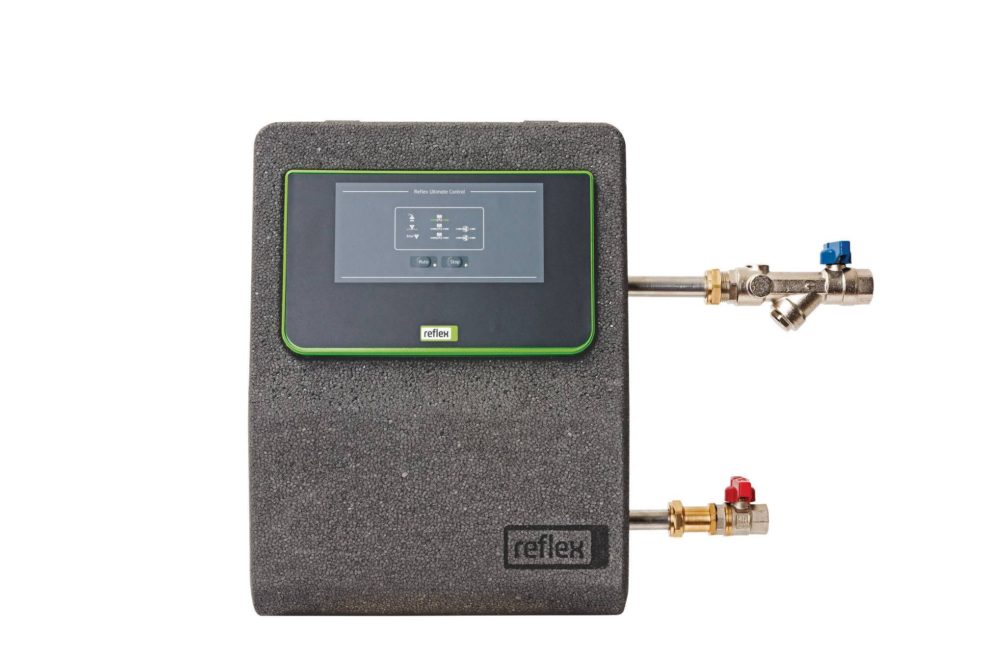 Vacuum spray-tube degassing system for system degassing in sealed heating water and chilled water systems, configured as a fully automatic multi-function unit with auto-stop operation and automatic hydraulic compensation of the degassing process and monitoring of the water make-up request.Only suitable for water.Functional unit comprising hydraulic part designed for wall mounting and electronic, ergonomically arranged Control Smart controller with CE marking.Degassing takes place within the hydraulic part using a diaphragm pump in conjunction with a vertically arranged brass vacuum spray tube. This is equipped with a vacuum spray nozzle, dipstick-tube degassing unit and pressure monitoring. To protect it against dirt, the unit as a whole is located in a housing made from expanded polypropylene with an opening maintenance cover.The Control Smart controller is integrated in a robust plastic housing in which both the power and communication electronics and the control panel with dirt-resistant plastic foil keyboard are housed. Bluetooth is integrated as standard as a communications interface. The controller has a fully automatic microprocessor controller with time function, differentiating error and parameter memory, LED display of the operating modes and general error messaging, visualisation of the control states for system pressure and all relevant operating and fault messages using the Control Smart App via Bluetooth communication.Control Smart enables convenient wireless operation via Bluetooth using an app for smartphones and tablets running either iOS or Android to provide simple commissioning as well as visualisation of system operation. The following functions are available: