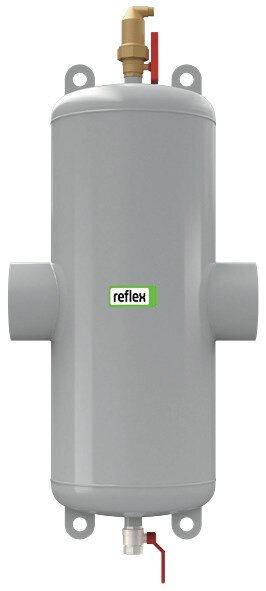 Gecombineerde afscheider voor lucht-/microbellen en slib voor verwarmings- en koelwatersystemen of gesloten, met vloeistof gevulde systeemcircuits.
